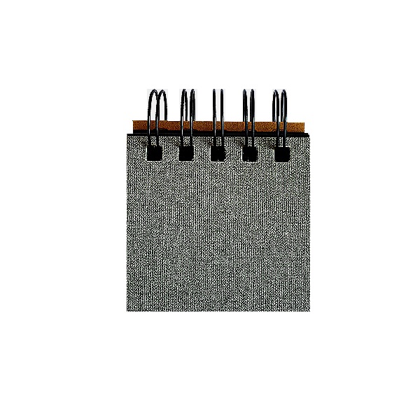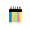 Block anillado contenedor de memos adhesivos. Materiales: Papel y cartón recubierto de PVC.