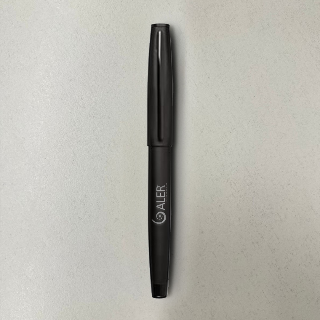 Lapicera con logo. Lápiz roller. Cuerpo de color negro mate. clip con detalles en color negro brillante. Con estuche de cierre imantado. Material: Metal.