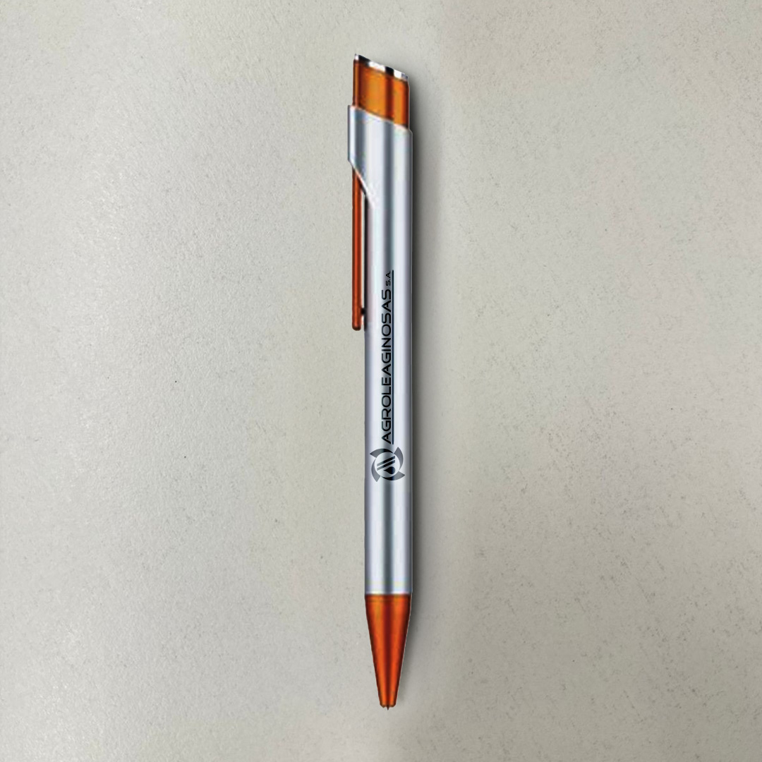 Boligrafo con logo. Puntera, grip y pulsador de color. Material: Plástico.