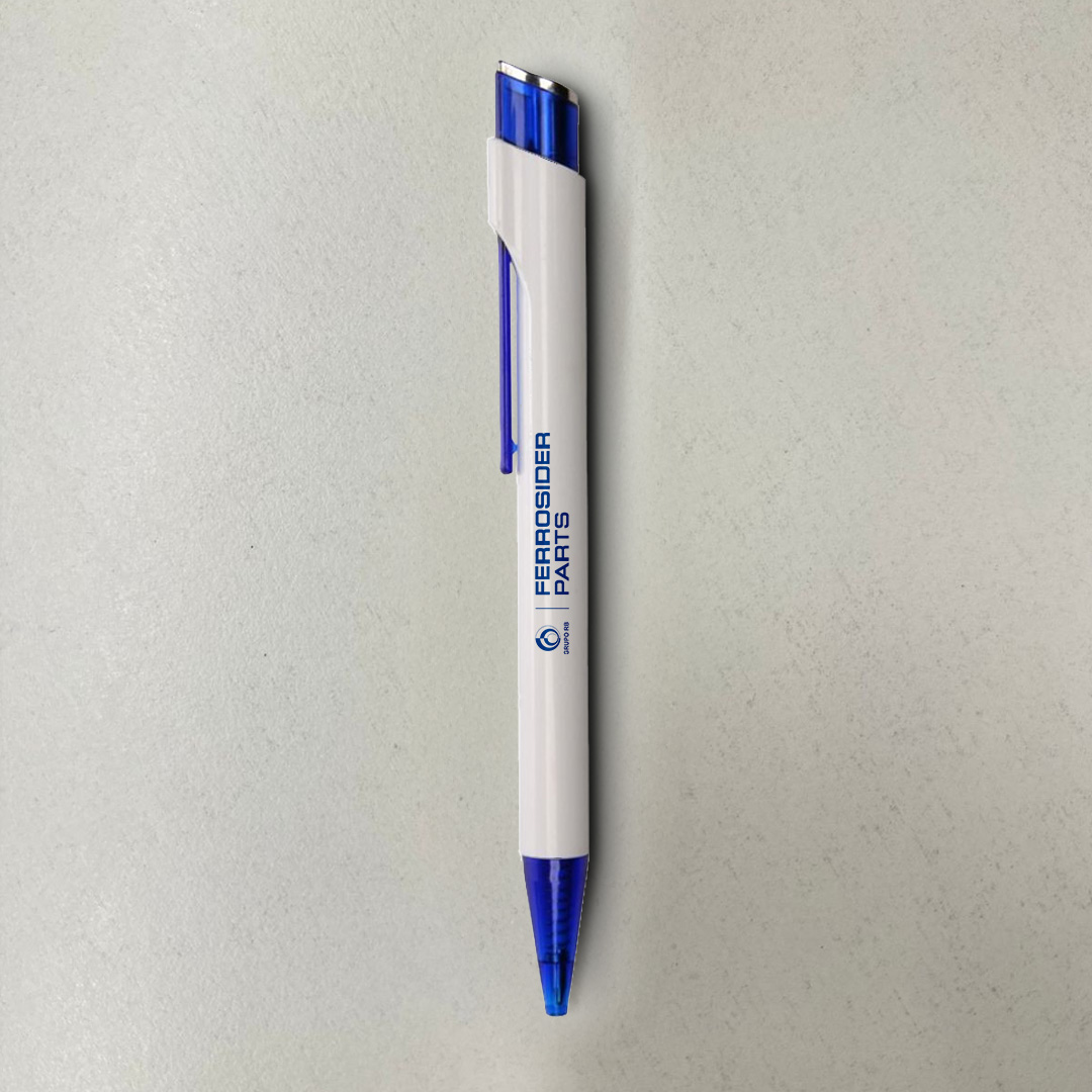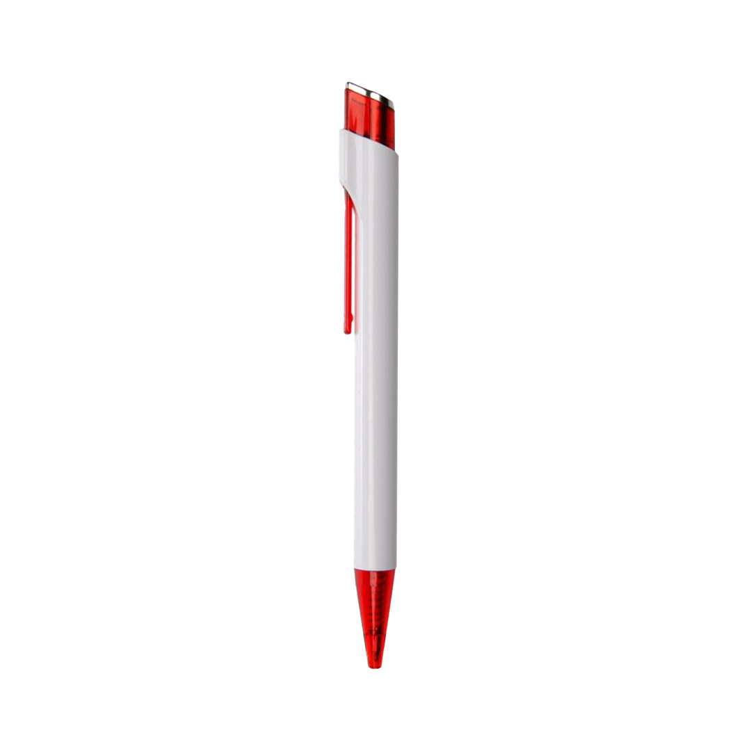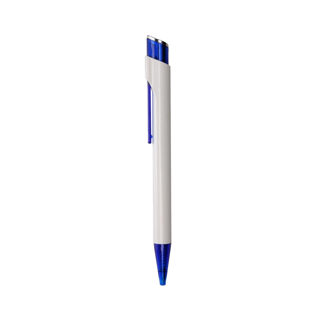 Bolígrafo con logo. Sólido blanco, clip y punta en color translúcido. Pulsador color translúcido combinado con plata. Material: Plástico.