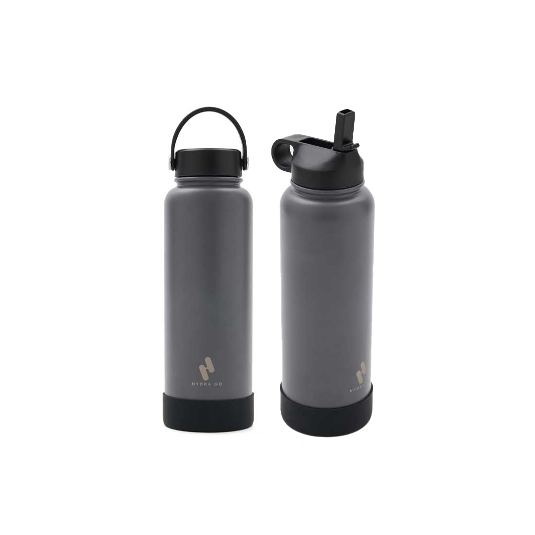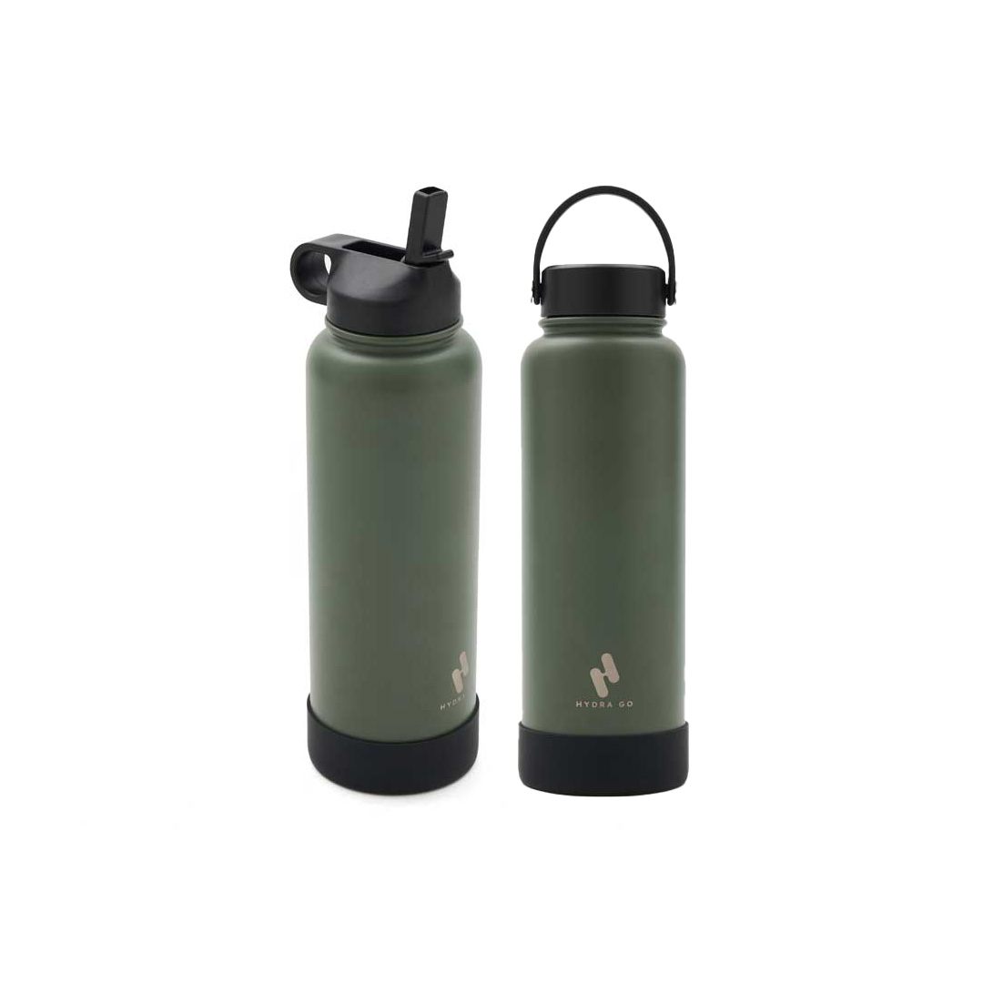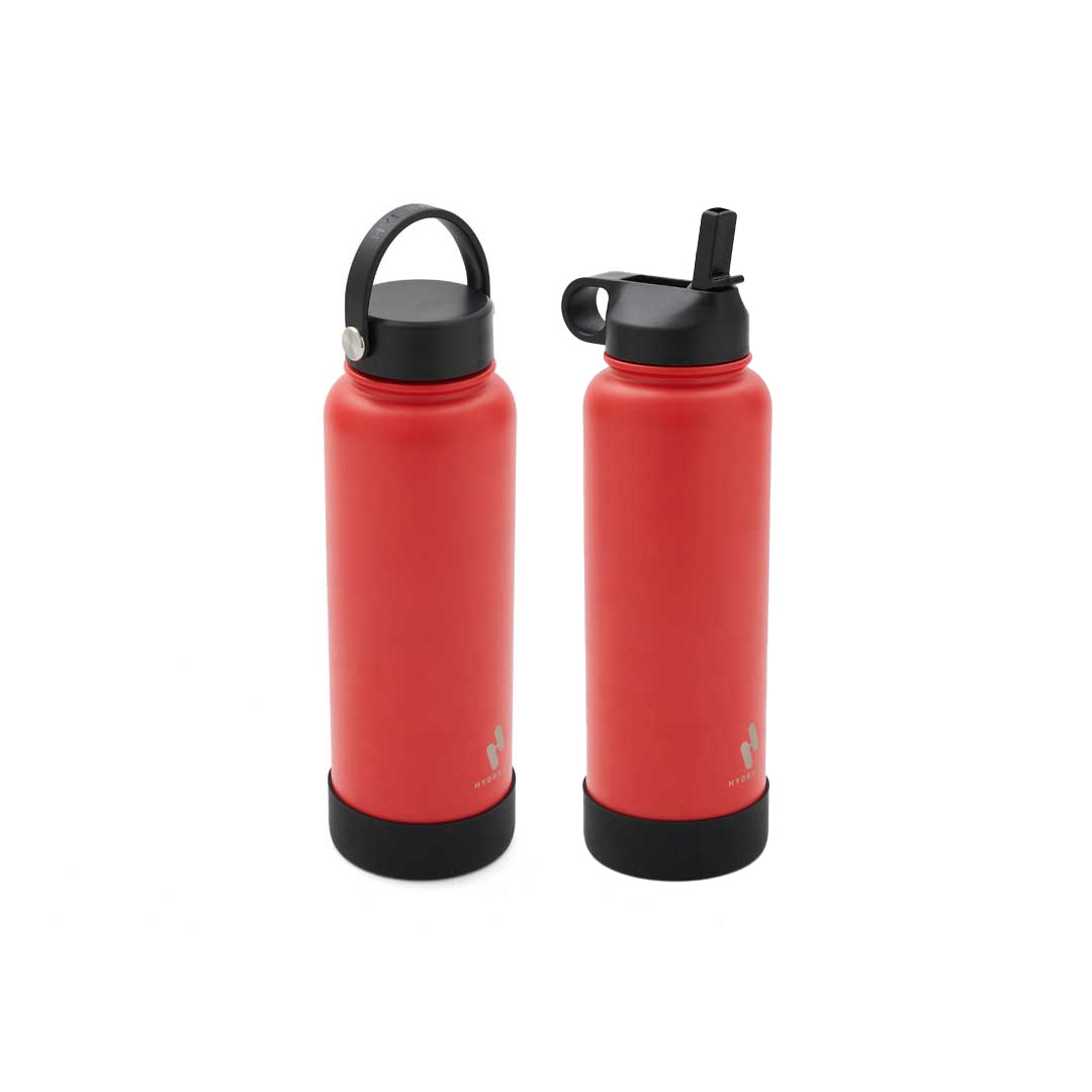 Botella isotérmica de 1200 ml, con doble pared de acero inoxidable 18/8, pintura en polvo y base de silicona antideslizante. Bebidas frías durante 12 horas y calientes durante 8 horas. 2 tapas negras a rosca. 2 sorbetes y cepillo limpiador. No es apto para lavavajillas. No es apto para microondas.