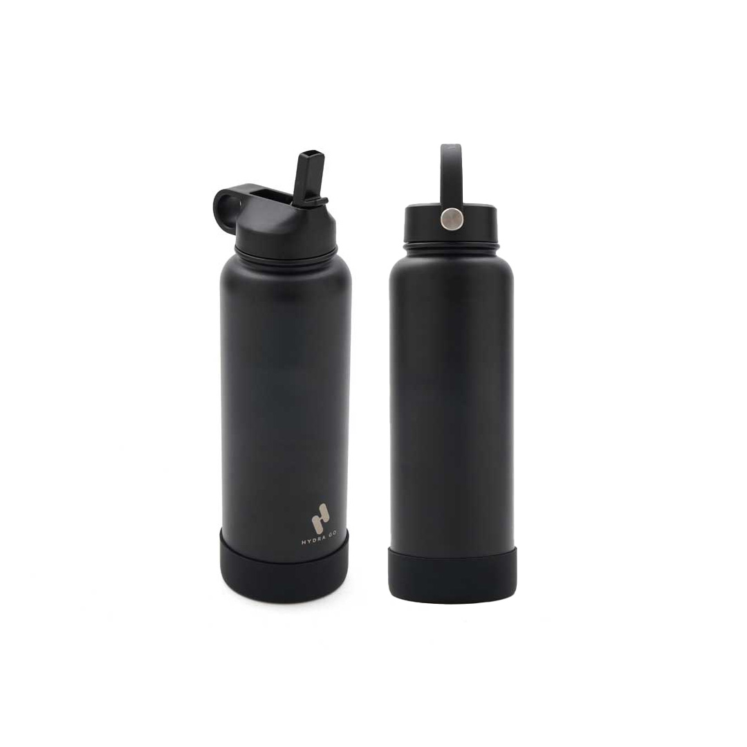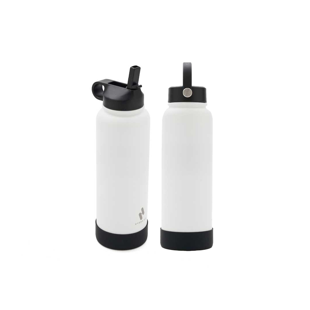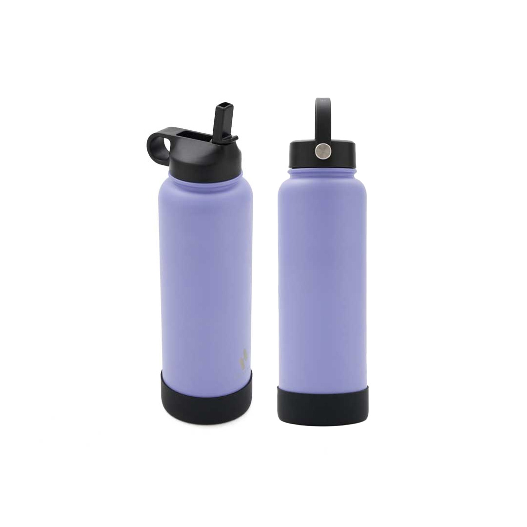 Botella isotérmica de 1200 ml, con doble pared de acero inoxidable 18/8, pintura en polvo y base de silicona antideslizante. Bebidas frías durante 12 horas y calientes durante 8 horas. 2 tapas negras a rosca. 2 sorbetes y cepillo limpiador. No es apto para lavavajillas. No es apto para microondas.
