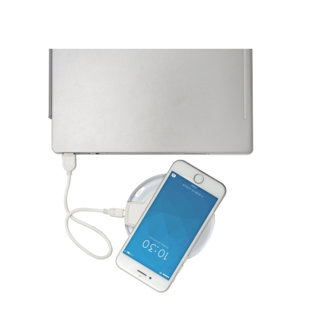 Apoyando el celular comienza a cargar, es necesario que se encuentre enchufado para que funcione. Entrada mini USB.