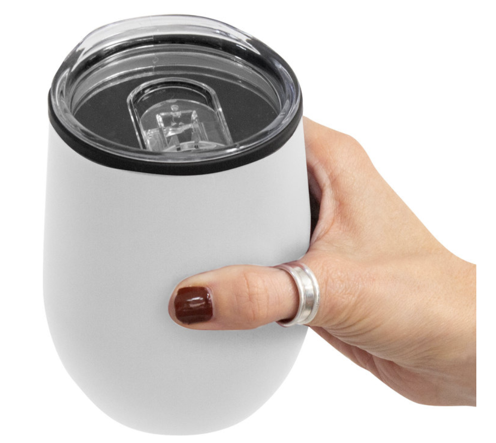 Base antideslizante. Presentación en caja de regalo individual. Material: Polipropileno y acero inoxidable. Doble Pared. Interior de plástico y exterior acero inoxidable 201. Medidas: 8 x 11,5 cm. – Capacidad 350ml