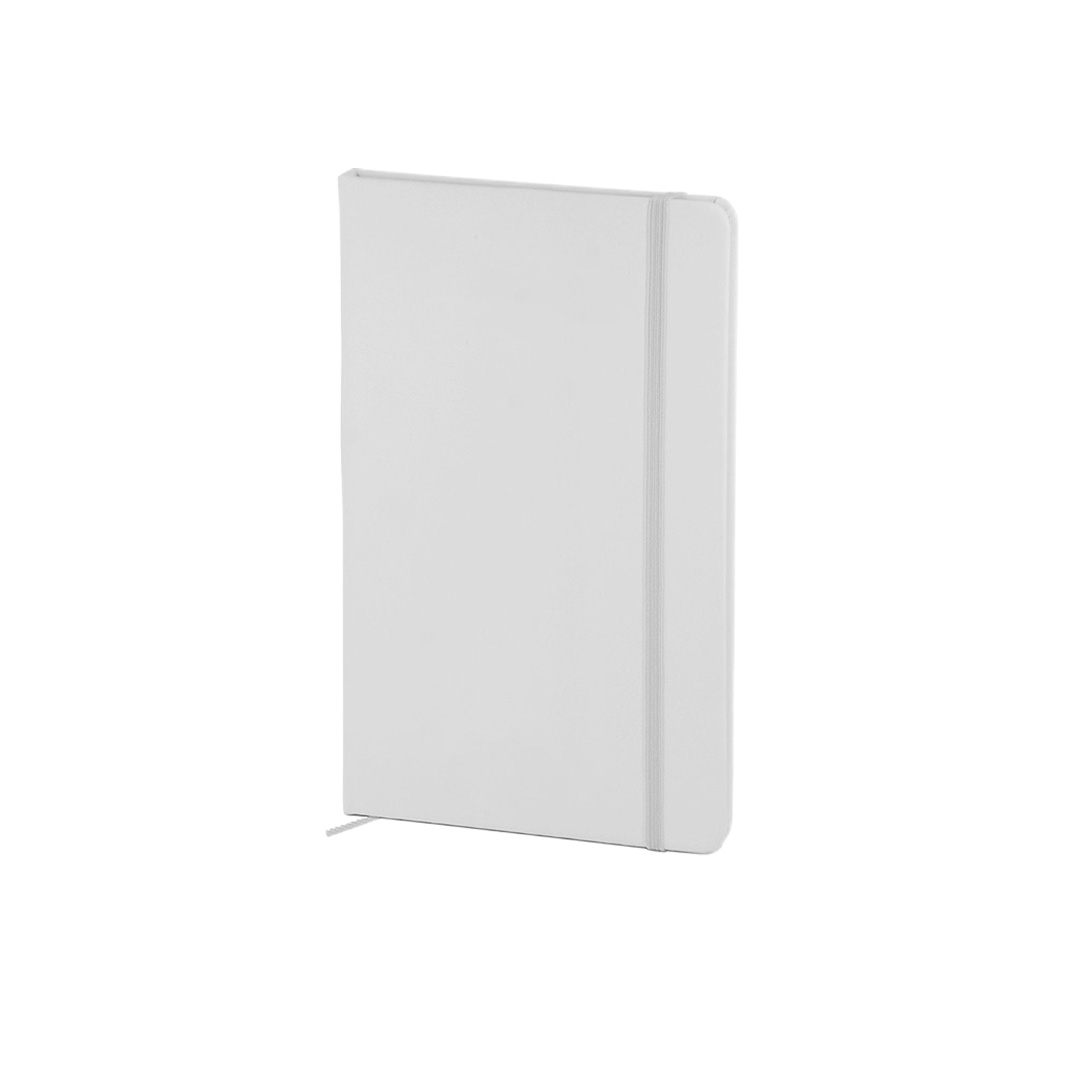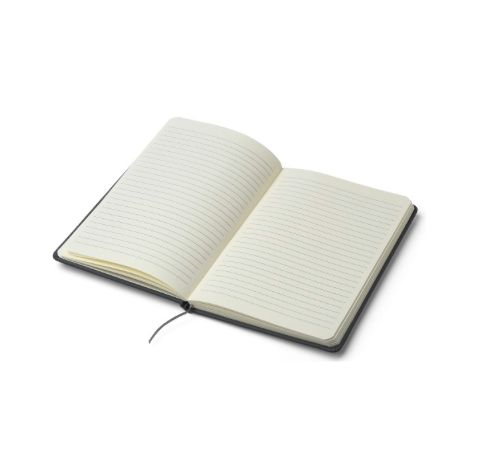 Cuaderno forrado en eco cuero soft mate. 96 hojas papel crema rayadas de 70 gr. y señalador. Medidas cerrado: 21 x 14,3 cm. Consultar por libretas personalizadas.