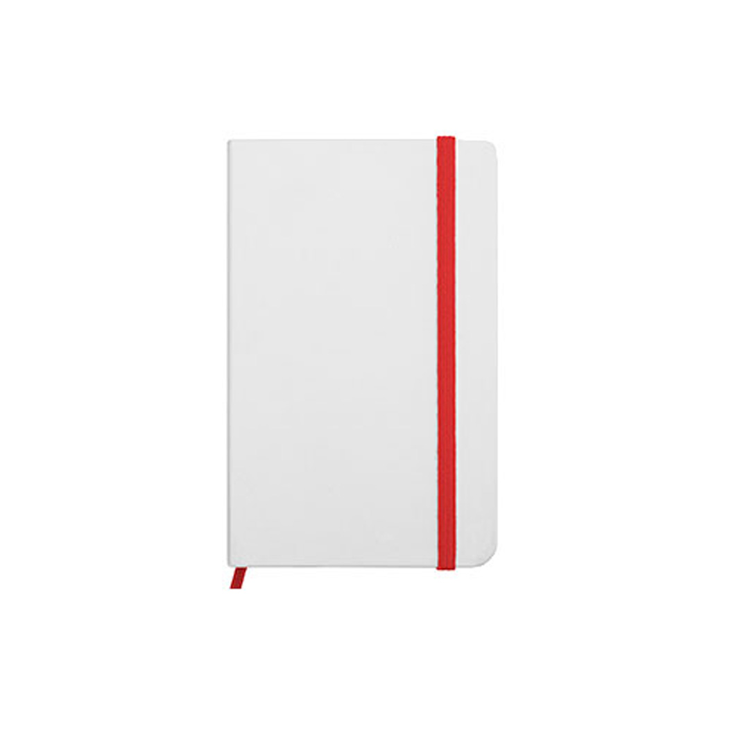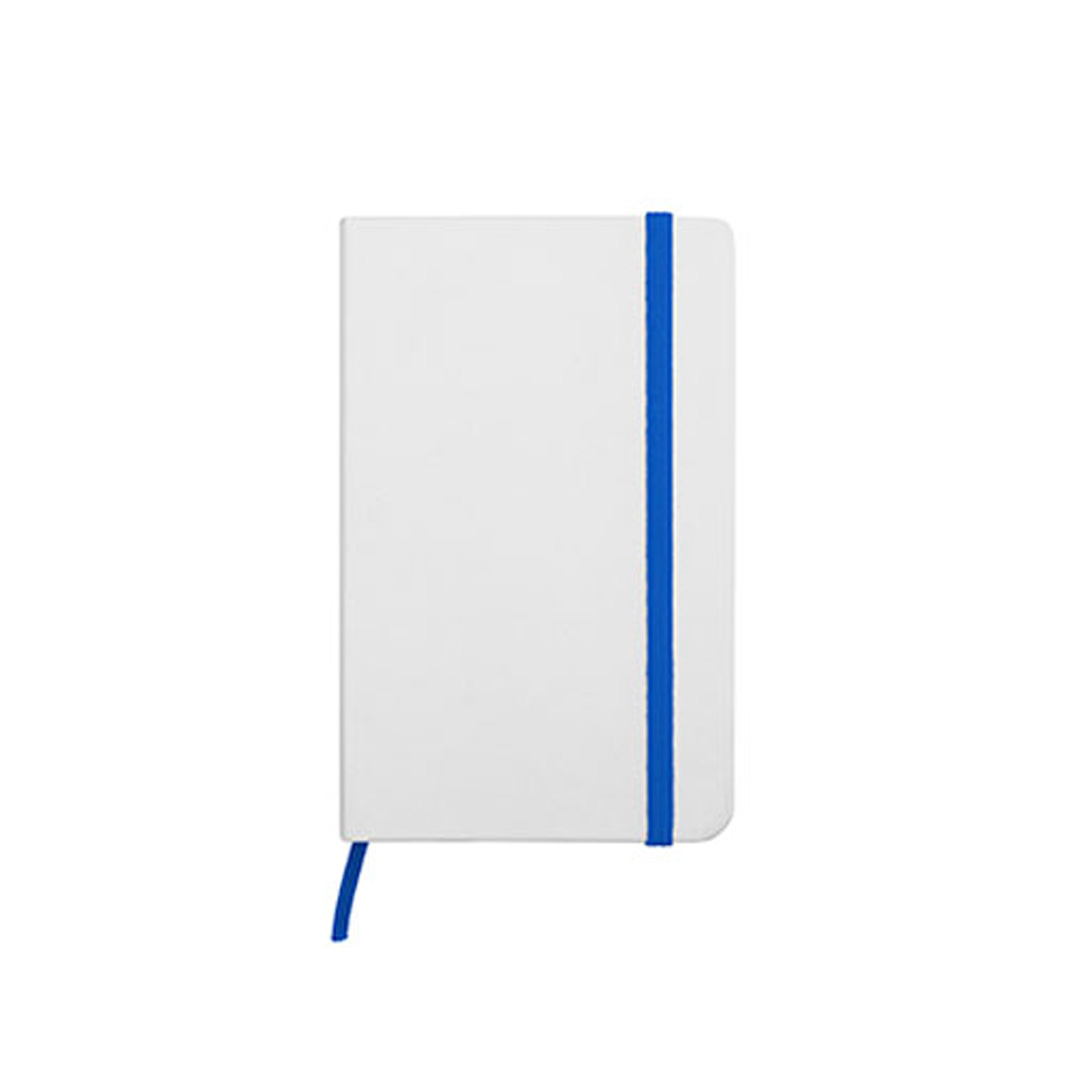 Libreta de tapa dura color blanco. Contiene 80 hojas rayadas. Posee cierre con banda elástica y separador en tela. Material:Cartón. Medida: 21 x 14,5 x 1,2 cm. Consultar por libretas al por mayor.
