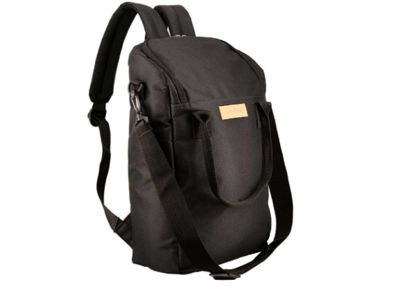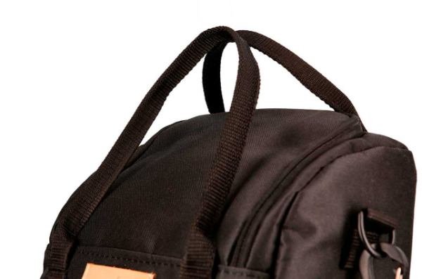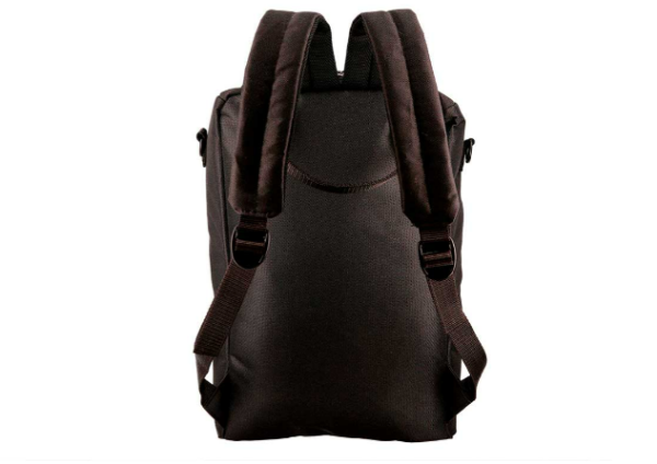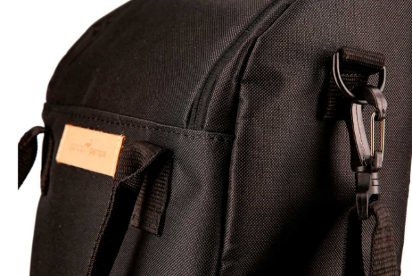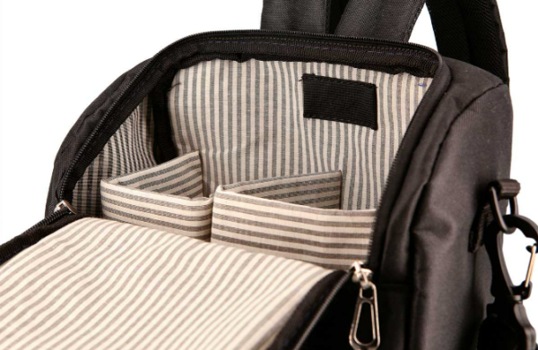 Mochila matera forrada a rayas de Gross. Dos manijas y correa de 40mm de ancho. Contiene porta bombilla y separador para el mate, termo, azucarera y yerbera. Cierre reforzado.