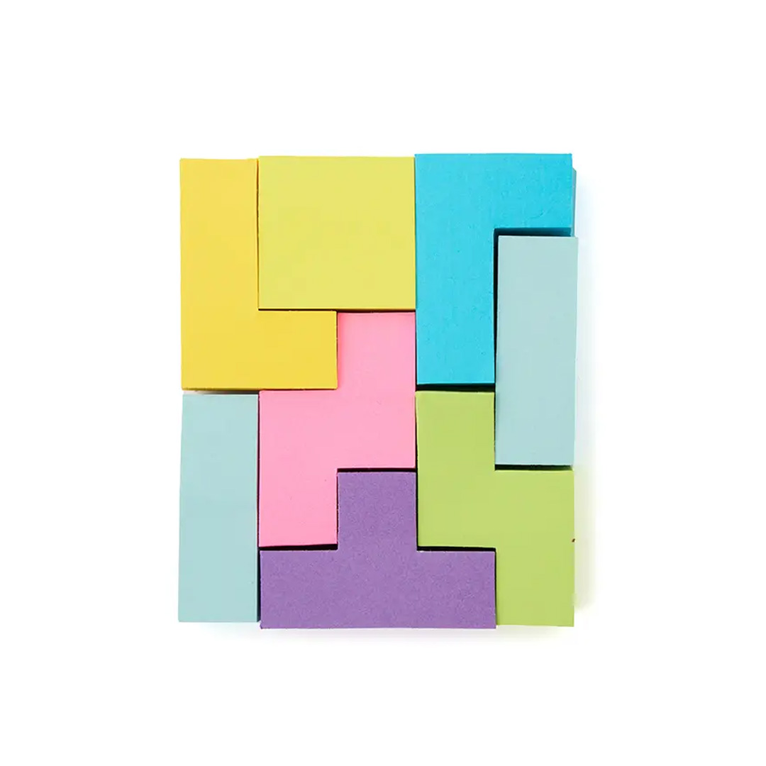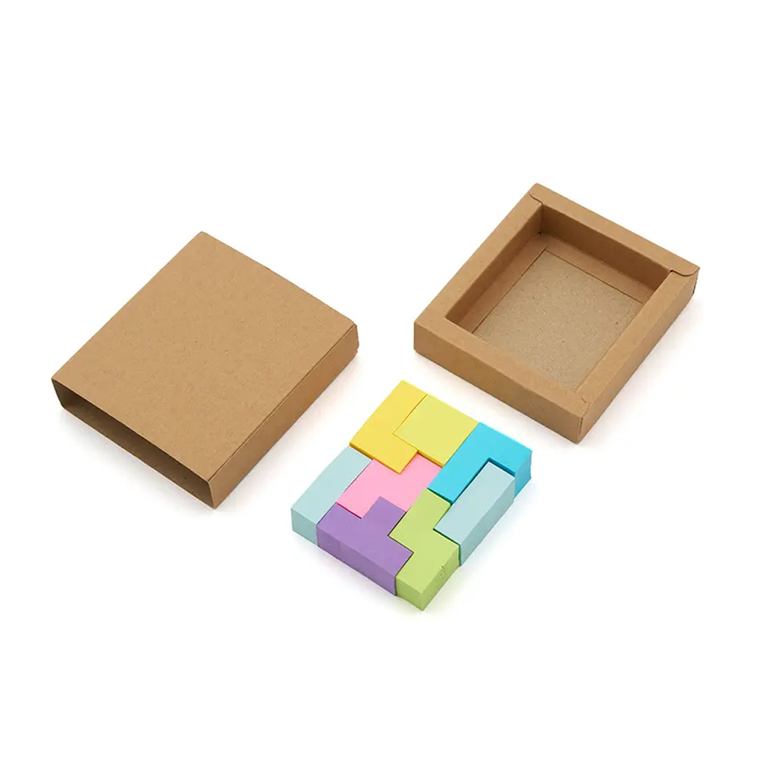 Set de notas adhesivas. Caja de cartón reciclado; las notas adhesivas de papel offset (73 gsm); y el empaque de papel kraft (300 gsm). Cuenta con 200 mini notas adhesivas en colores y formas geométricas variadas, presentadas en caja con tapa deslizante.